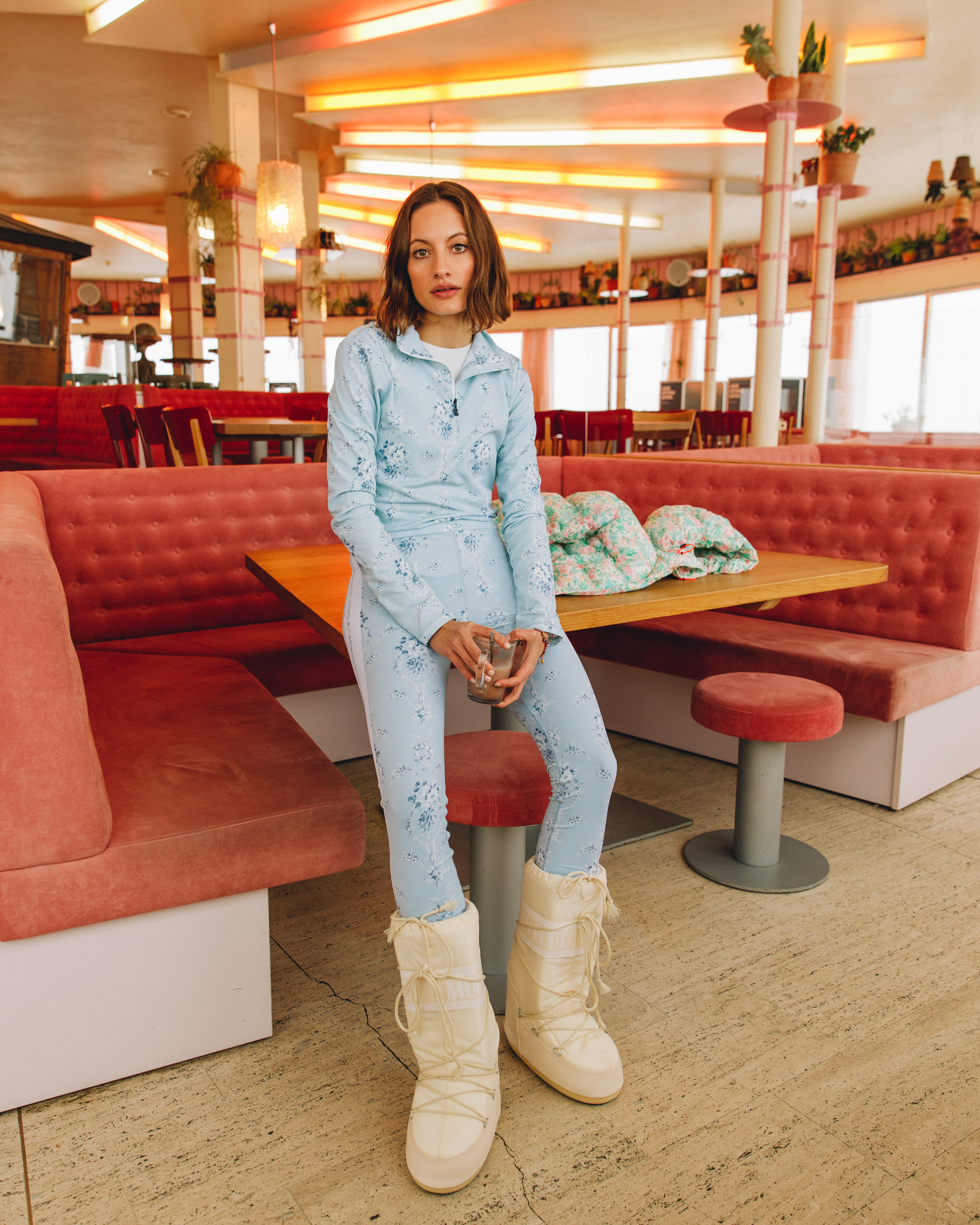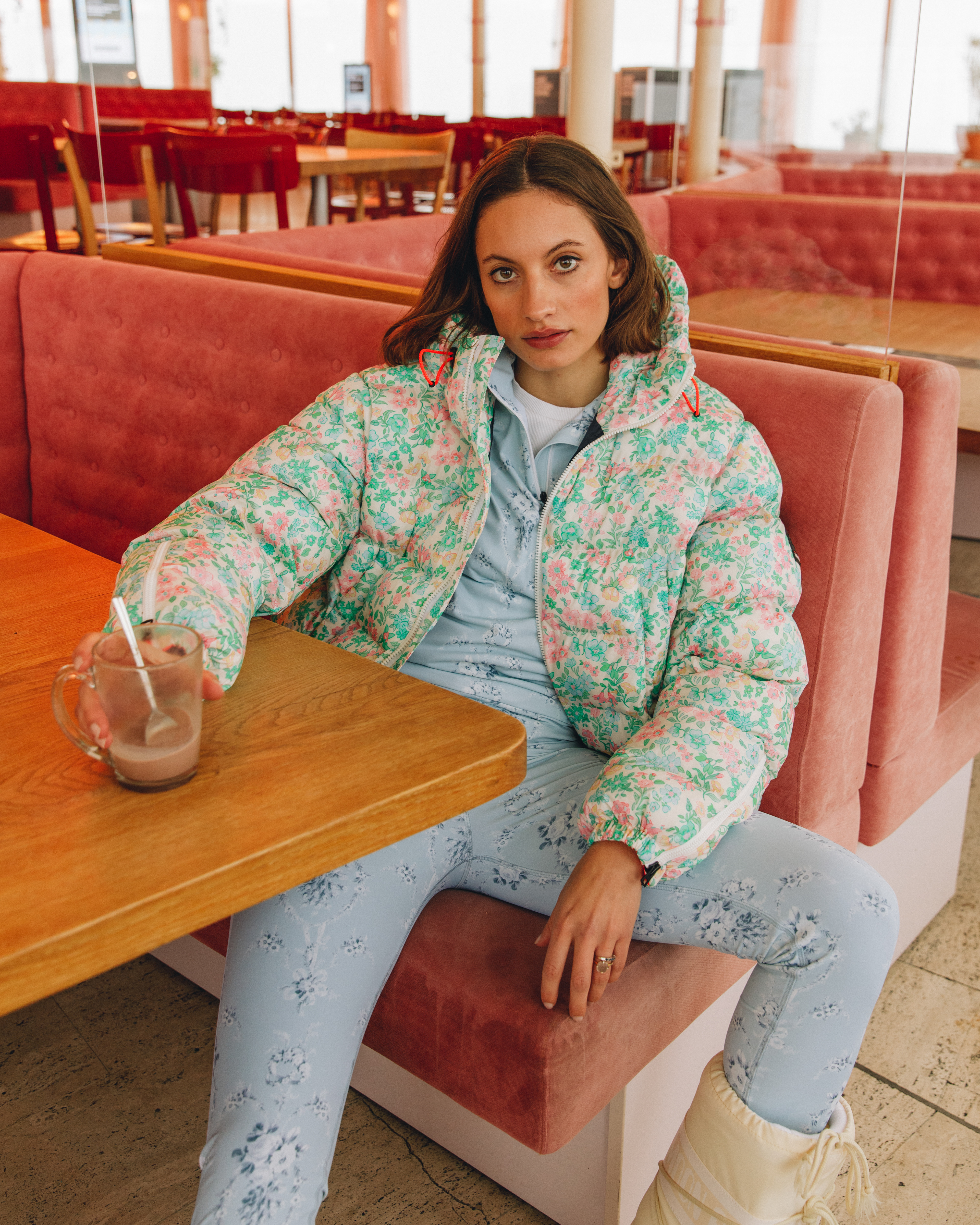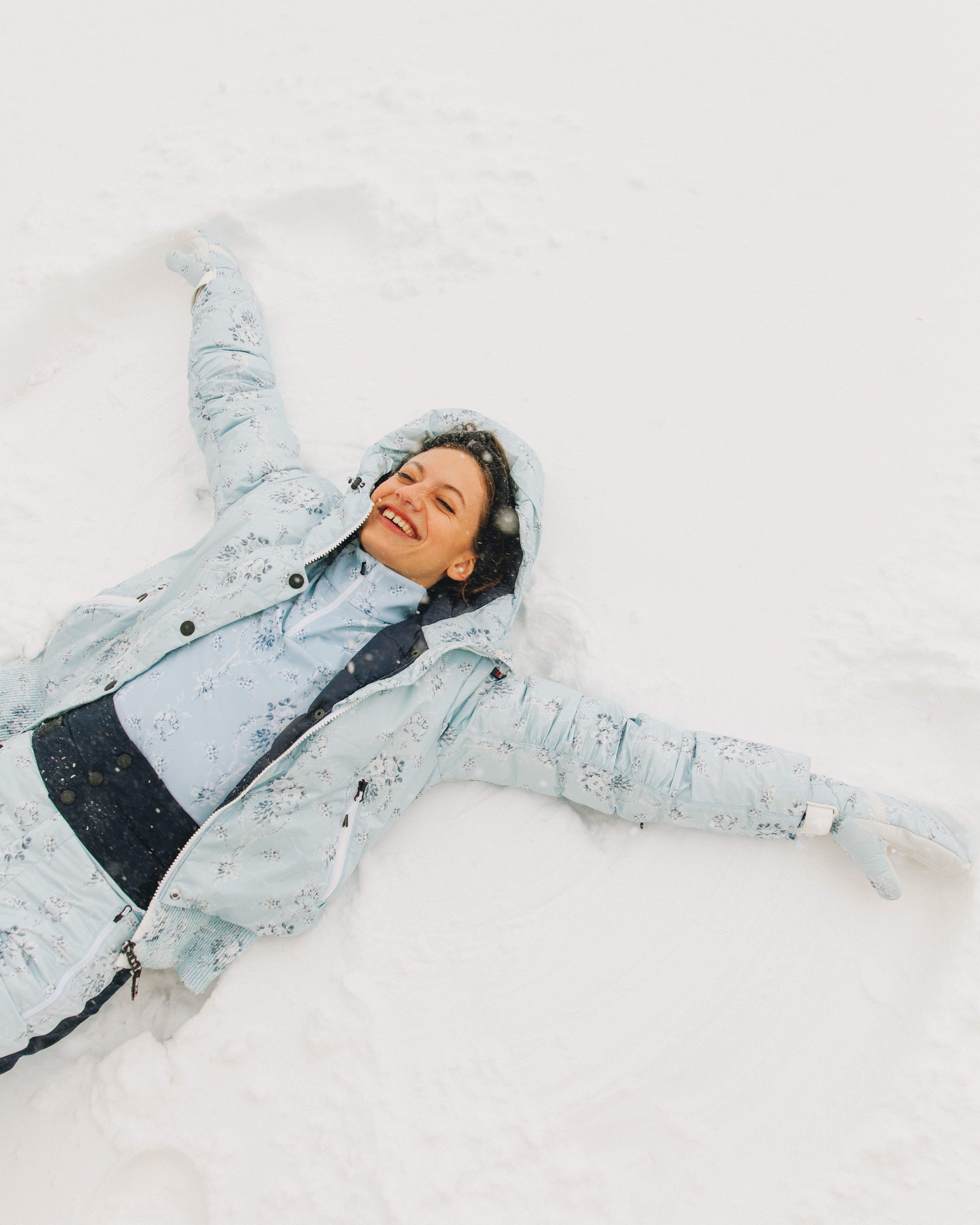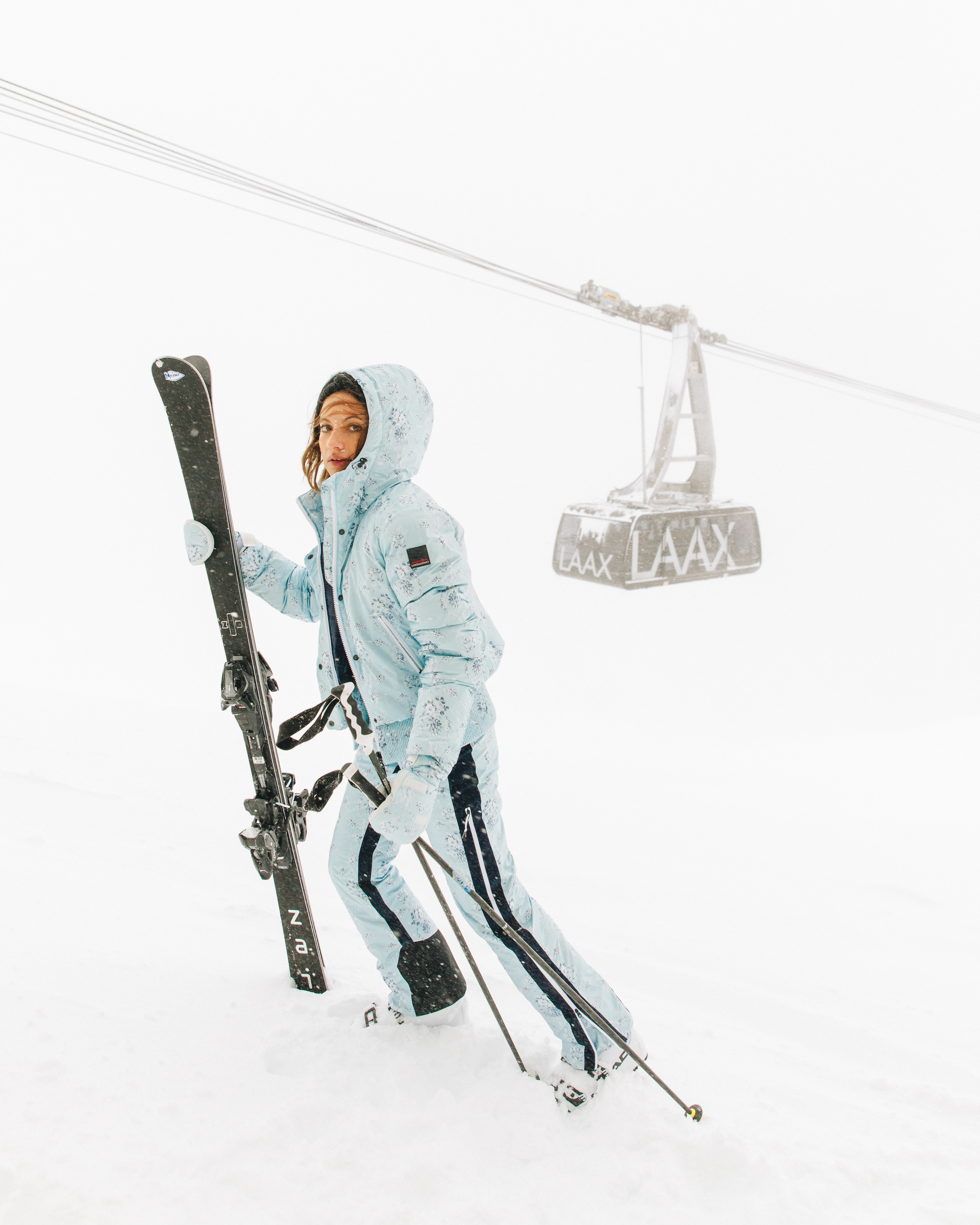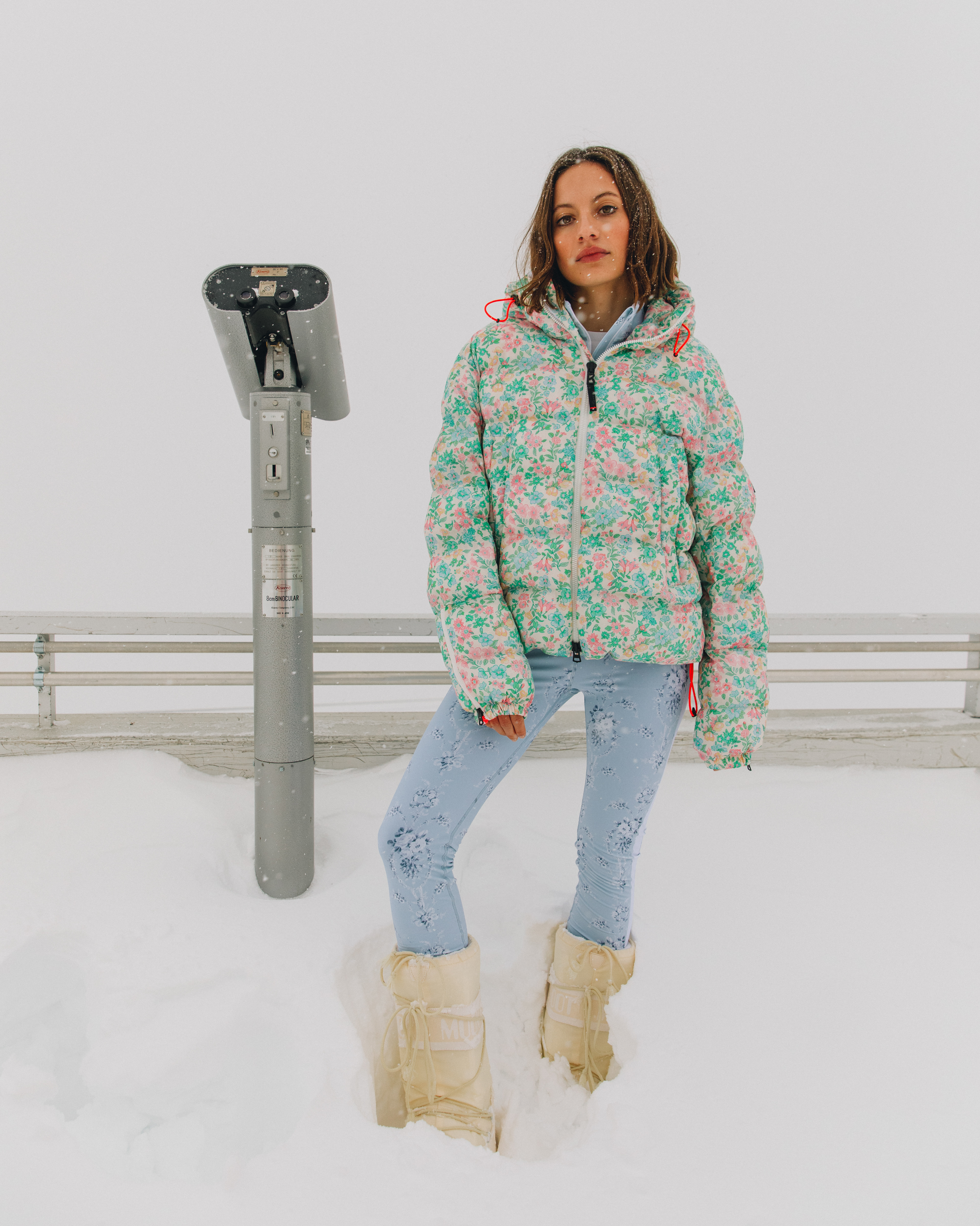 These pictures were shot for the Bogner FW21 collection. Bogner is a luxury clothing brand, creating high-end products with fine textiles. This campaign aims to convey the feeling of Swiss winter: cozy jackets and accessories to keep warm during the coldest months of the year. The feeling is maintained even in the outdoor shots, where the snow is surrounding the model, who still communicates a feeling of warmth.