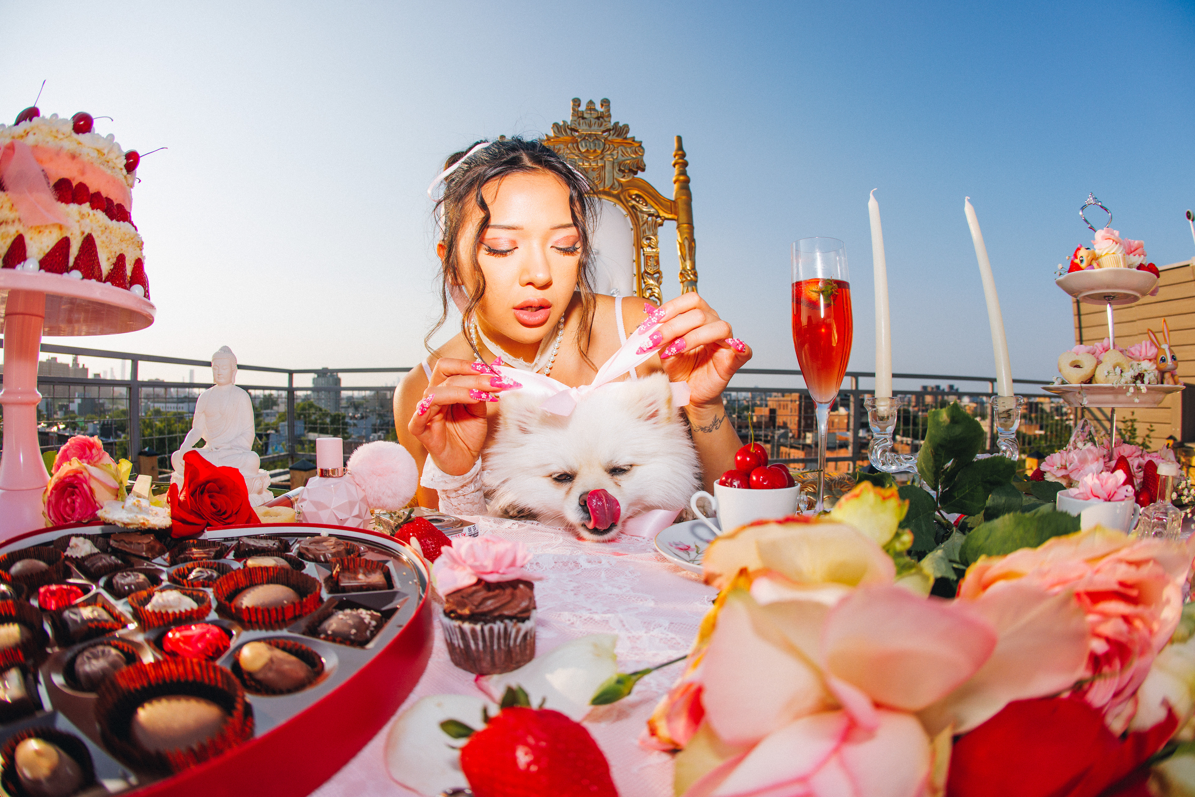 Some colorful shots of YouTuber Mai Pham celebrating hitting 3 million subscribers on YouTube, sitting at a table on her penthouse rooftop. The table setting is very detailed and every element has a meaning, symbolizing pieces of her journey as a content creator and where it all started. Her mom appears in the series, for she was very supportive of Mai throughout her career.